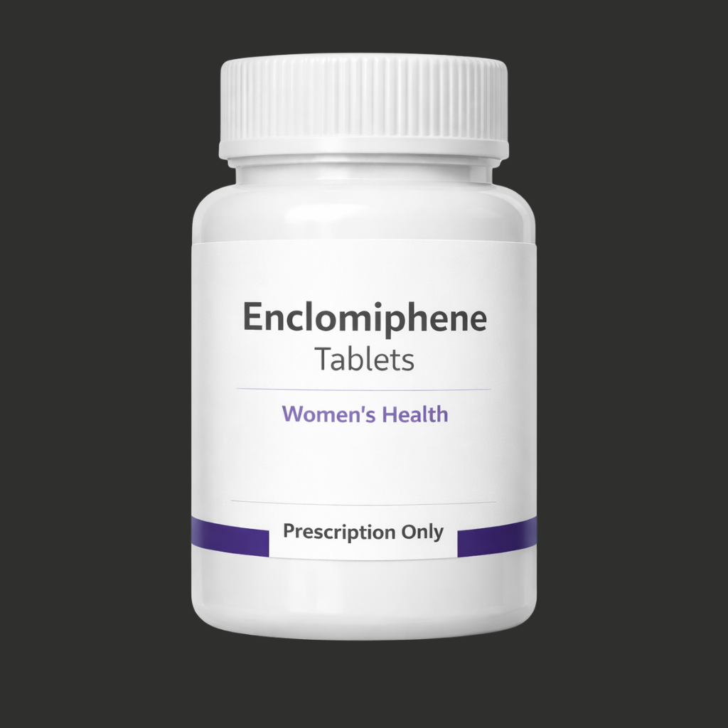 Enclomiphene works by blocking estrogen receptors in the hypothalamus, which signals the pituitary gland to increase production of luteinizing hormone (LH) and follicle-stimulating hormone (FSH). In men, these hormones stimulate the testes to produce more testosterone naturally, helping restore testosterone levels while maintaining fertility. In women, increased LH and FSH can help stimulate ovulation and regulate menstrual cycles, making it useful for fertility treatment and hormonal balance.