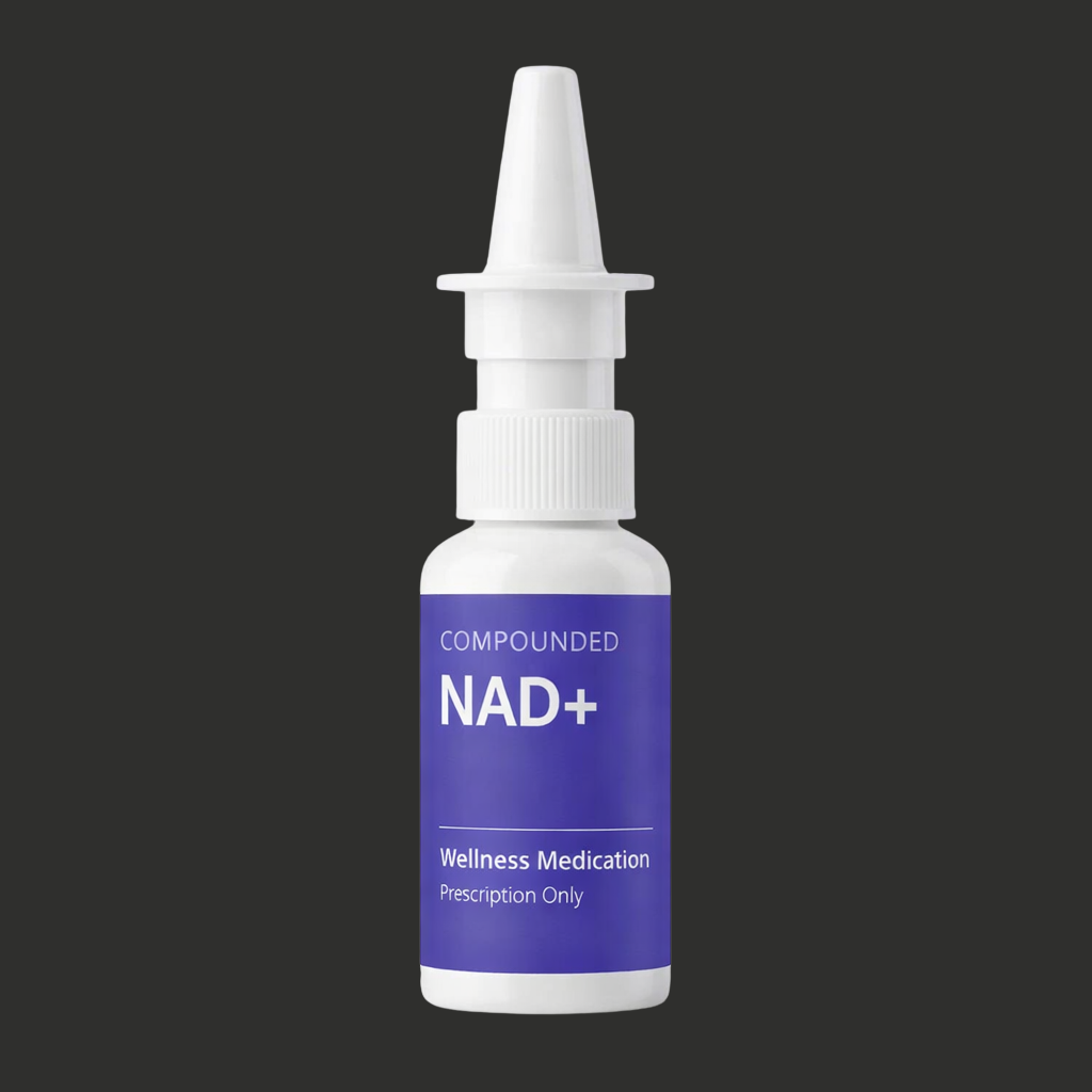 NAD+ Nasal Spray delivers Nicotinamide Adenine Dinucleotide through the nasal passages, where it is absorbed directly into the bloodstream via the nasal mucosa. This method bypasses the digestive system, allowing for efficient absorption without the need for injections. Once absorbed, NAD+ supports mitochondrial function, activates sirtuins for cellular health, and helps repair DNA damage. The nasal delivery method provides a convenient way to support cellular energy production, cognitive function, and overall wellness without injections.