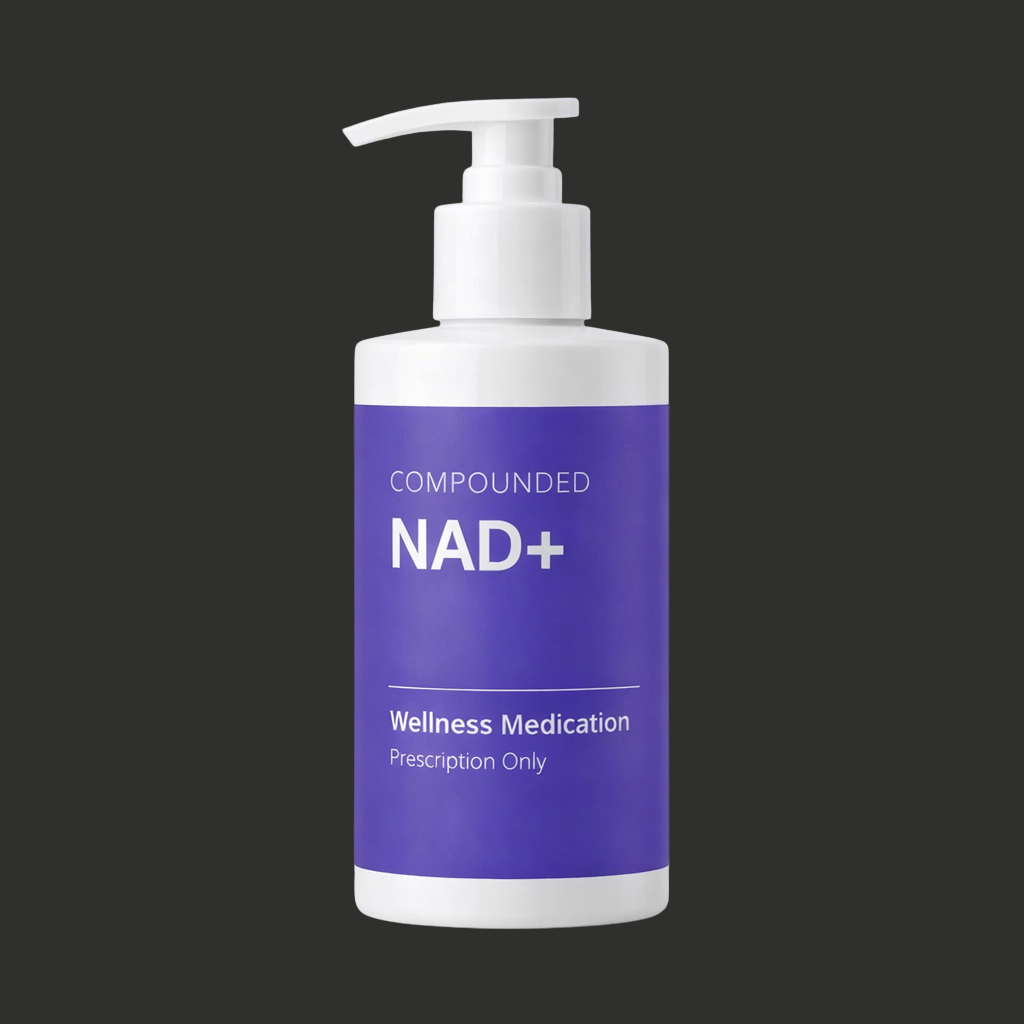 NAD+ Cream delivers Nicotinamide Adenine Dinucleotide through the skin via transdermal absorption. When applied topically, NAD+ can penetrate the skin layers and support cellular function in the applied area. NAD+ plays a crucial role in cellular energy production, DNA repair, and cellular communication. Topical application allows for localized benefits, supporting skin cell health, collagen production, and overall skin vitality. This method provides a convenient way to support skin health and cellular function without injections.