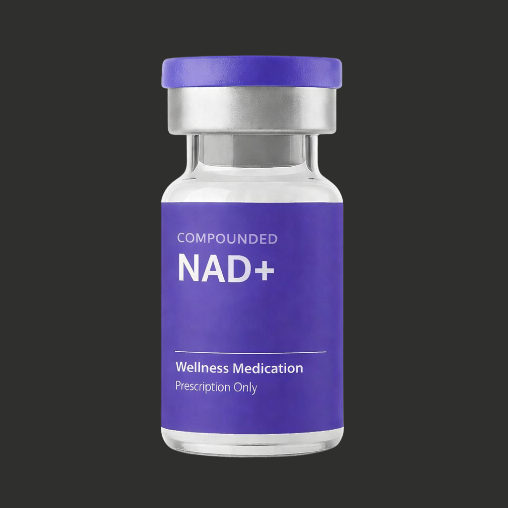 NAD+ is a coenzyme found in every cell that plays a crucial role in energy production, DNA repair, and cellular communication. Injectable NAD+ bypasses the digestive system and delivers the molecule directly into the bloodstream, ensuring optimal absorption and bioavailability. Once in the body, NAD+ supports mitochondrial function (the powerhouses of cells), activates sirtuins (proteins involved in cellular health and longevity), and helps repair DNA damage. This can help restore cellular energy production, support cognitive function, and promote overall cellular health and vitality.
